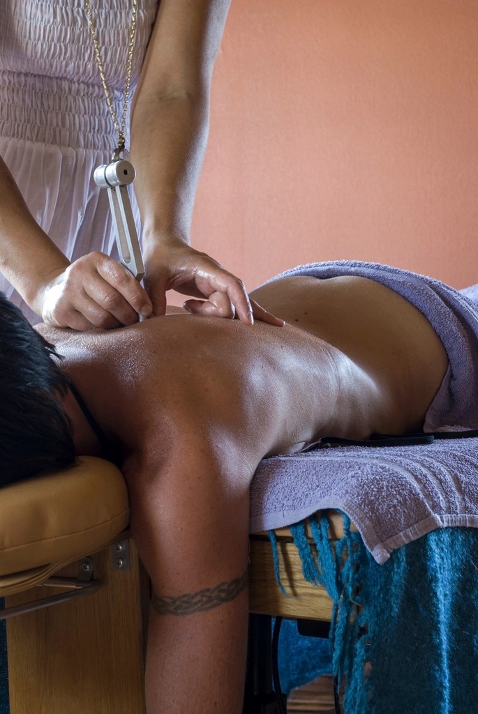 - Du ligger eller sitter bekvämt medan terapeuten slår an stämgafflarna.
